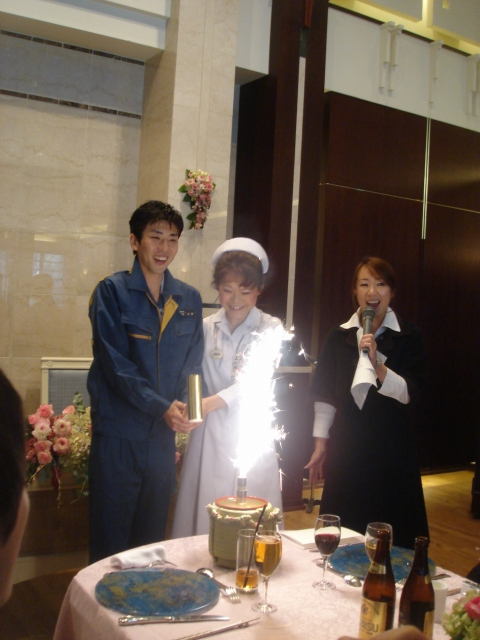 そんな職業を活かしたお二人。ケーキだけではなく、お仕事のコスチュームでテーブルサービスです!