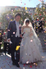 青空の下、フラワーシャワーで階段を下りてきた・・・と思ったら・・・