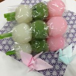 お色直しの時に、とっても素敵な紋付と色打掛に合わせて三色団子をみなさまへプレゼントしながらご挨拶へ。