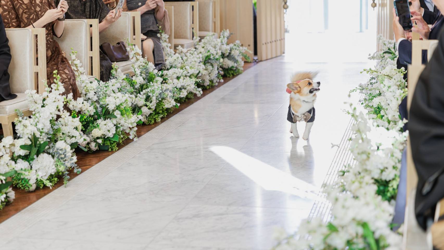 ふたりのたいせつな指輪を扉の外から走ってお届け♪
