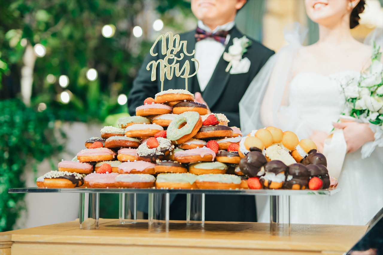 歓談の後は おふたりの大好きが詰まったウェディングケーキ♪